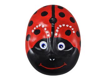 Linda Van Gilder Kelley is an active artist with a professional painting group, Arts on 7th. She also paints for Sunset Studio in Denver working in all mediums but prefers oils and acrylics. Her favorite subjects are landscapes and still lifes. She painted this mask in memory of artist and friend Larry Muttick who died of liver cancer this year before he could get his mask painted. He loved painting lady bugs and this is a copy of his personal design.