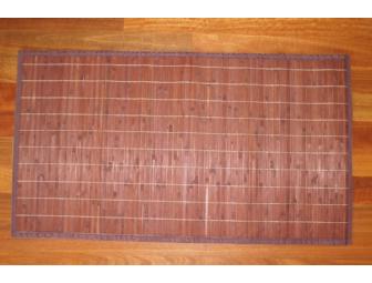 This is a bamboo mat with rubber bottom. It is very lovely and is large enough for a floor mat but lovely enough for a table runner. Be sure to look at all of the colors that are available.