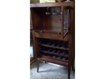 This is a gorgeous java colored wooden wine rack with a cupboard and slide out tray. by Southcone