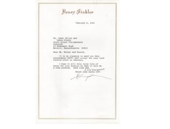 The script was purchased by the donors at a celebrity auction in 1982. Included with the script is a letter from Henry Winkler to the auction organizers.