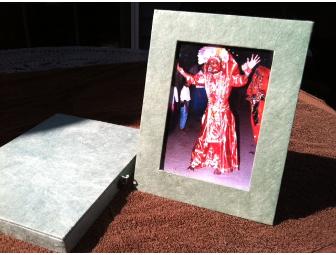 This most unique photo frame, handmade in Nepal, is made of hardcore sturdy paper mache in a soft green color. includes a keepsake matching giftbox suitable for treasured letters. Holds 5"x7" photos. The sweetest housewarming or birthday gift for anyone from teen to senior!