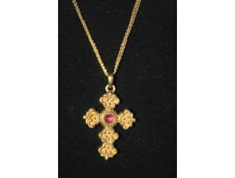 FJ ITALIAN ART FORM GOLD CROSS W/BEZEL SET PINK TOURMALINE!