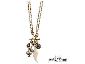 An ivory aventurine feather, a tiger-eye teardrop, ornately scrolled accents and a solo crystal. Feather’s medley of random charms creates intrigue and interest. . Close the toggle in front to wear the double-strand at your neckline…or, Feather can be worn as a long single strand necklace, with the toggle positioned in back.