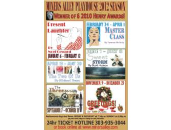 a friend to Miners Alley Playhouse. You will receive a complimentary Cocktail Reception on the 2nd Saturday of each run including and an after-show conversation with the cast and crew. You will also receive a 20% discount to our Annual Wine Tasting Fundraiser of the year and 10% dinner for two (with purchase of two entrees) at the Table Mountain Inn.