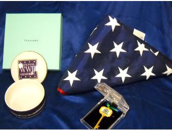 Tiffany Co. Trinket Box commemorating the WWII Memorial and 3' x 5' Flag 1 of 100, Celebrating 100th Anniversary of Spindletop.