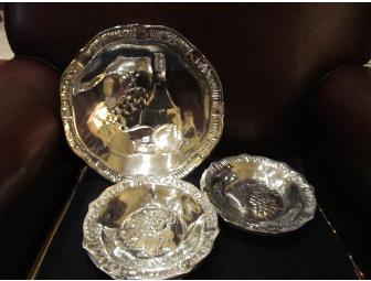 11 3/4" pasta serving bowl and matching set of four 8" bowls. Wine bottle and grape design.