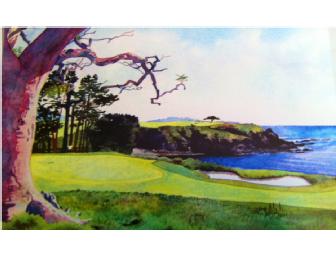 Originally autographed Scott Mulholland watercolor print - Pebble Beach
