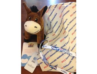 Your chance to own a limited edition 2012 Democratic National Convention AT&T delegate gift bag. This is the perfect gift for any political/history buff or child. These delegate bags were a huge hit at the 2012 Democratic National Convention in Charlotte so supplies are limited! The delegate gift bag comes with an AT&T lanyard, official AT&T DNC convention pin, and the custom made AT&T Donkey stuffed animal.