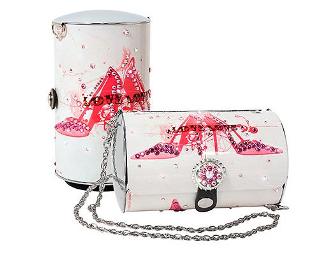 Broken heart...Love Heels! Or at least a trip to the shoe store will make you feel better. The Littlearth CycloneFlair purse takes our popular Cyclone purse and dresses it up in hundreds of Swarovski crystals. The effect is spark-tacular. Each crystal is applied by hand to turn this into an amazing one-of-a-kind bag that looks great with everything from jeans to evening wear. A metal chain, pave?crystal bottle cap closure and special RoadFlair "inspection sticker" add to the allure. Plus each CycloneFlair arrives with a signed and numbered certificate of authenticity. (shipping & handling included)