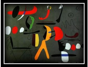 Miró enjoyed international acclaim during his long and productive career. He was one of the many outstanding Spaniards—including Pablo Picasso (1881–1973), Juan Gris (1887–1927), Salvador Dali (1904–1989), and Francis Picabia—who, by belonging to the School of Paris, helped to establish the high esteem in which it was held during the first half of the twentieth century. And like many of those other artists, Miró continued to energetically produce his art and to experiment with form and subject long after the years of his initial celebrity had passed.