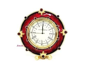 Jay Strongwater 2" Round Enamel and Stone Clock - "Robert" from the Classics Collection.