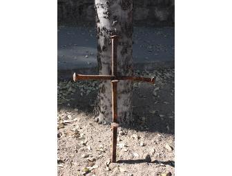 Greg created this unique cross by welding 5 railroad spikes together. This cross makes a stunning statement. Greg's work can also be found at Pop-Cycle.