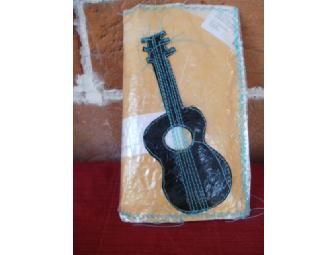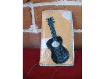 This eyeglass case was once a music mailer sent to KXCI from Kill Rock Stars and has a guitar lovingly stitched on it.
