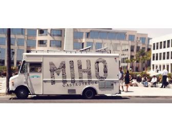 Enjoy a $15 gift certificate toward MIHO Gastrotruck. MIHO Gastrotruck is San Diego's Premiere Gourmet Farm-toTable Food Truck. Visit www.MIHOgastrotruck.com to check out their weekly schedule and daily menu!