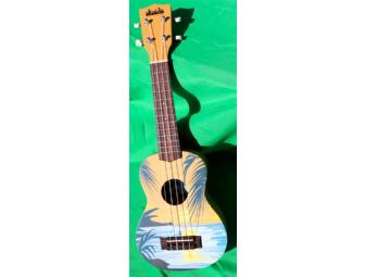 A specially designed ukulele, all wood construction, geared tuners, Aguila strings and song sheets.