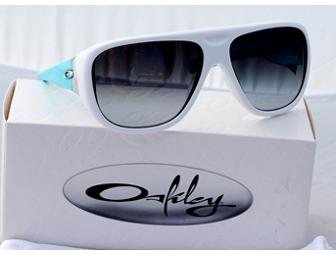 Great ready for those beautiful sunny California day with one (1) pair of sea foam green and white Correspondent Oakleys. These high quality, sturdy glasses hug your face just the right way, and have a polycarbonite lens with a 100% UV protection coating, great for summer or snow!