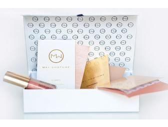 Enjoy Mai Couture Gift set. Whether you want them all, or just can't decide, choosing has been made easy with the summery-toned Mai Couture Sultry Sunset Gift Set. Beautifully packaged with five Mai Couture favorites including 2-1 Blotting/Bronzing Papier in Uptown, Lavendere- fresh oil blotting papier, Blush Papier in Sunset Blvd., and two Social Glosses in French 125 and G'vinity.