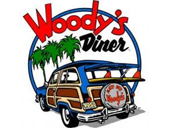 Enjoy $25.00 gift card to Woody's Diner. Offers breakfast, lunch and dinner in a 1950's surf-themed style restaurant.