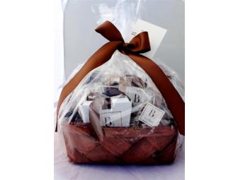 Gift basket from B. Toffee including assorted milk and dark chocolates and B. Toffee.