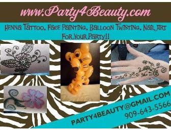 Need entertainment for your child's birthday party? Use your $85 certificate towards two (2) hours of face painting, balloon twisting, Henna tattoos or glitter tattoos.