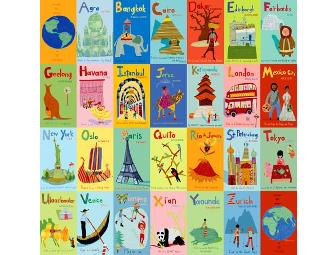 Enjoy this children's canvas wall art depicting the alphabet with international cities representing each letter.
