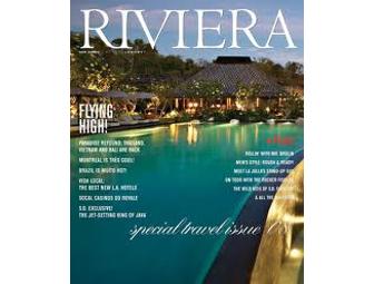 One lucky winner will spend three (3) afternoon hours with Riviera's publisher, Chris Gialanella, at their headquarters in Costa Mesa. Riviera is Orange County's premier luxury lifestyle magazine. Learn how Riviera is created each month from cover to cover. The winner will see how each issue forms from conception, article content and advertising, to print and delivery. Then hear about the latest trends and have all questions answered over lunch with Mr. Gialanella and some Riviera fashionistas.