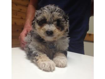 Calling all puppy lovers! Here is your once in a lifetime chance to spend the day with Lola, the cutest, cuddliest mini Aussie Doodle puppy you have ever seen. Two (2) lucky students will join Ms. Howard and Mrs. Schmitz as you take darling little Lola for a stroll on the Central Park Doggie Loop in Huntington Beach. After your jaunt through the park, pull up a chair and dine at the Park Bench Cafe. Grab a bowl of water for Lola and help her choose between the Bow-wow-wow Chicken or the Rover-easy scrambled eggs, both featured on the Cafs world famous doggie menu. So lace up your walking shoes and join the art teachers for what promises to be a barking good time! Every dog has her day and Lolas day will be Sunday, April 14 at 12:00 noon.