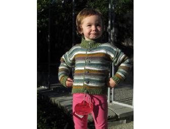 You are bidding on a gift set that contains a green multicolor striped button down long sleeve handmade sweater (Sz 4) was lovingly made by WSP Grandma Angie (Teacher Kim's family). Made of acrylic yarn and perfect for chilly days and a maracha instrument set.