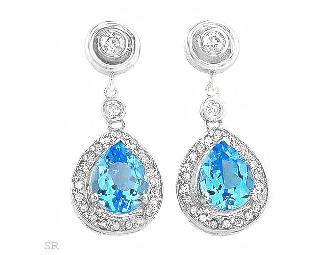 NEW! BEAUTIFUL BLUE TOPAZ AND DIAMOND EARRINGS IN WHITE GOLD!