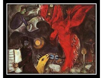 Marc Chagall was born Moishe Shagal on July 7, 1887, in Vitebsk, Russia, to a poor Jewish family that included ten children. His father, Zakhar Chagall, worked in a fish factory and his mother, Ida Chagall, worked in the family home and ran a grocery store. The years of his childhood, the family circle, and his native village became the main themes of his art. These first impressions lingered in his mind like original images and were transformed into paintings with such titles as the Candlestick with the Burning Lights, the Cow and Fish Playing the Violin, the Man Meditating on the Scriptures, the Fiddler on the Roof, and I and My Village. According to French poet and critic André Breton (1896–1966), with Chagall "the metaphor [comparison of images] made its triumphant return into modern painting." And it has been said that Pablo Picasso (1881–1973) was a triumph of the mind, but Chagall was the glory of the heart.