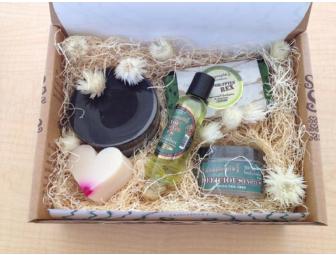 Soaptopia gift box includes Oil Slather (eucalyptus with tea Tree), handmade soap (eucalyptus and peppermint), Two body balm (eucalyptus with tea Tree) and heart shape handmade soap.