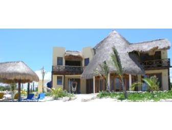 Stay in this beautiful beachfront villa in Tankah Tres - at Tulum, Mexico - for one week. Three separate en suite guest rooms sleep six with privacy and comfort. Tankah is positioned well for any number of day adventures to Mayan ruins, eco-parks, beaches and other vacation towns on the Riviera Maya, especially day or night time excursions to shop or dine in Playa del Carmen which is about 40 minutes north.