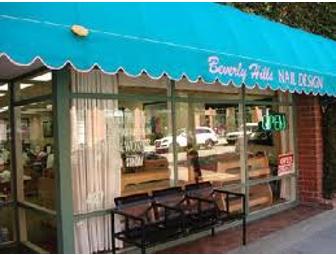 Beverly Hills Nail Design is a large, comfortable salon offering manicures and pedicures. The shop has 16 chairs and a large couch area with a long drying light.