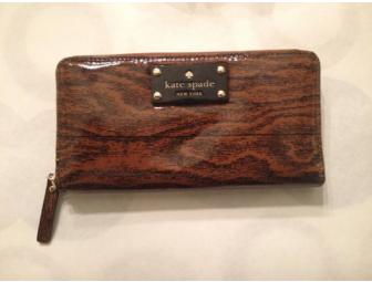 Kate Spade Knock on Wood Grain Brown Lacey Large Zip Wallet Coin Clutch NWT