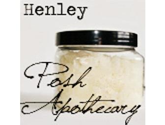 Everything at Henley Posh Apothecary is made with all natural ingredients. Really. Nothing fake or processed or engineered. Each order is handmade, so there will be variations in scent and texture from item to item, but good care is taken for consistency and creation of an excellent product every time. The Bath Bundle includes a bath sized lavender scrub, an unscented deodorant, and a peppermint lip balm.