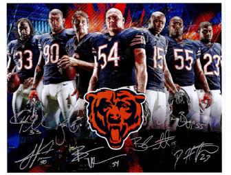Bears fans will love this limited edition laser autographed photo of Charles Tillman, Julius Peppers, Jay Cutler, Brian Urlacher, Brandon Marshall, Lance Briggs and Devin Hester.