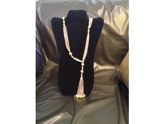 Stella & Dot Jewelry donated by Jeanine Benjamin. Bianca Tassel as seen on Entertainment Tonight and worn by Maria Menounos. Mixed antiqued and shiny 12k gold plated brass chains are anchored within 12k gold plated facets and drop to a perfect swinging tassel 33" length. Unique front hook closure is adjustable for length and can be worn multiple ways.