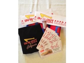 8 Gift Certificates for hamburger, fries and a drink. In-N-Out Beach towel, In-N-Out T-Shirt, In-N-Out Antenna Topper.