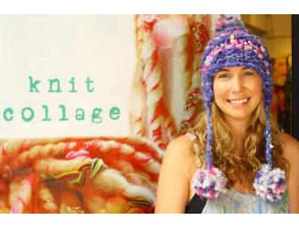 Knit Kit: Fun hand spun wool/mohair yarn knitting kit. Has everything you need to create your own accessory from unique hand spun yarn. For beginner to advanced beginner knitters. Inspired by nature, music, and travel, Knit Collage yarns are vibrant handspun creations that reflect our curious and optimistic approach to the world. Bits of ribbons, sequins, flower appliques, and anything that strikes our fancy are spun together with brightly colored wool, mohair and sparkling Angelina fibers. |