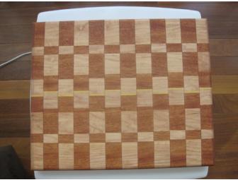 Handmade cutting board, sapele (Africa) and birch (America). Perfect for serving bread, fine cheese or hors d'oeuvres. Sealed with food safe mineral oil, hand-crafted by Jerome Smith, grandfather of Ivan and Harrison Smith.