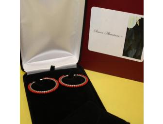 Simon Alcantara Sterling Silver and Italian Coral Handwoven Hoops