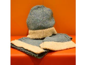 Hat & scarf set by Aran Sweater Market, 100% Irish wool, in light blue, size 12-18 months.