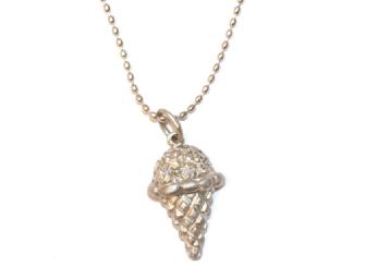 Indulge yourself with a sweet treat without the calories. 14KT White Gold Necklace with a Pave Diamond Ice Cream Pendant.