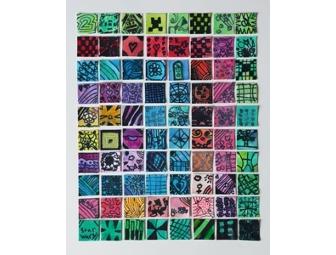 A masterpiece created entirely by the 2nd graders! Each student created their own square, and each square is an integral part of this piece of art. A stand-alone piece of artwork made by the kids...priceless!