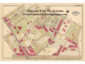 Winning bidder will receive a beautiful, custom-framed, matted, restored Antique Map of Brookline, including Coolidge Corner, from The Picture Place in Coolidge Corner. Devotion parent Michelle Lauder manages the Picture Place. The map is mounted acid free and on foam core and matted in a light sand color, making the overall picture size 15 x 22 inches. It is from 1919 and is from Heritage Community Maps.