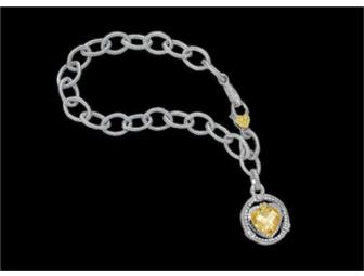 Charm yourself with this Judith Ripka classic - a sterling silver "berge" link bracelet adorned with a canary crystal heart charm.