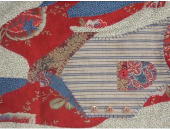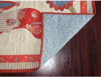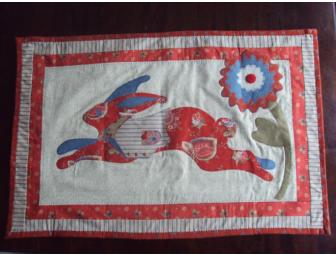 Beautifully hand crafted with lots of primitive stitching. The quilt measures 20" x 31" and may be displayed as a hanging piece, a table mat (rectangular runner) or draped over a sofa or chair.