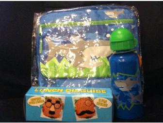 kids shark lunchbox, shark thermos and designed plastic sandwich bags