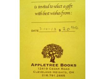 $20 Gift Certificate to our lovely neighborhood bookstore on Cedar Hill. Appletree Books has been an independent book store located in the Cedar/Fairmount shopping plaza in Cleveland Heights since 1975.