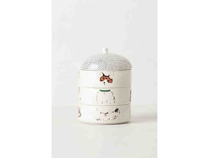 Claws stackable candle ($40 value) has 3 cat-decorated candle bowls and a top. Once candles are burned, you can use the bowls for cat (or human) treats!